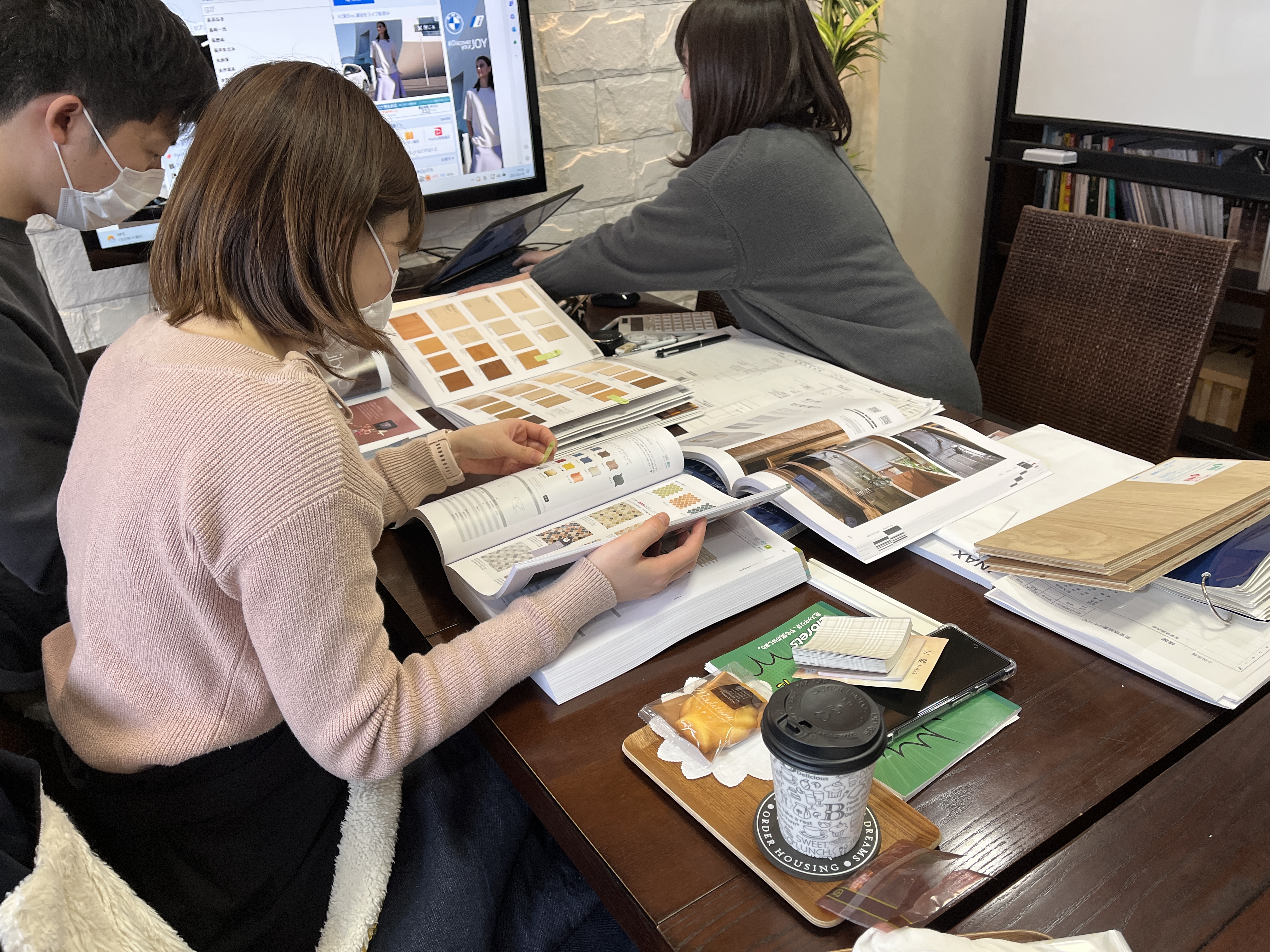 楽屋では一級・二級建築士、デザイナー、コーディネーター、宅地建物取引主任者など、延べ3,500棟以上の実績があるプロ達がお客様の大切なプランをコンペで競い合います。