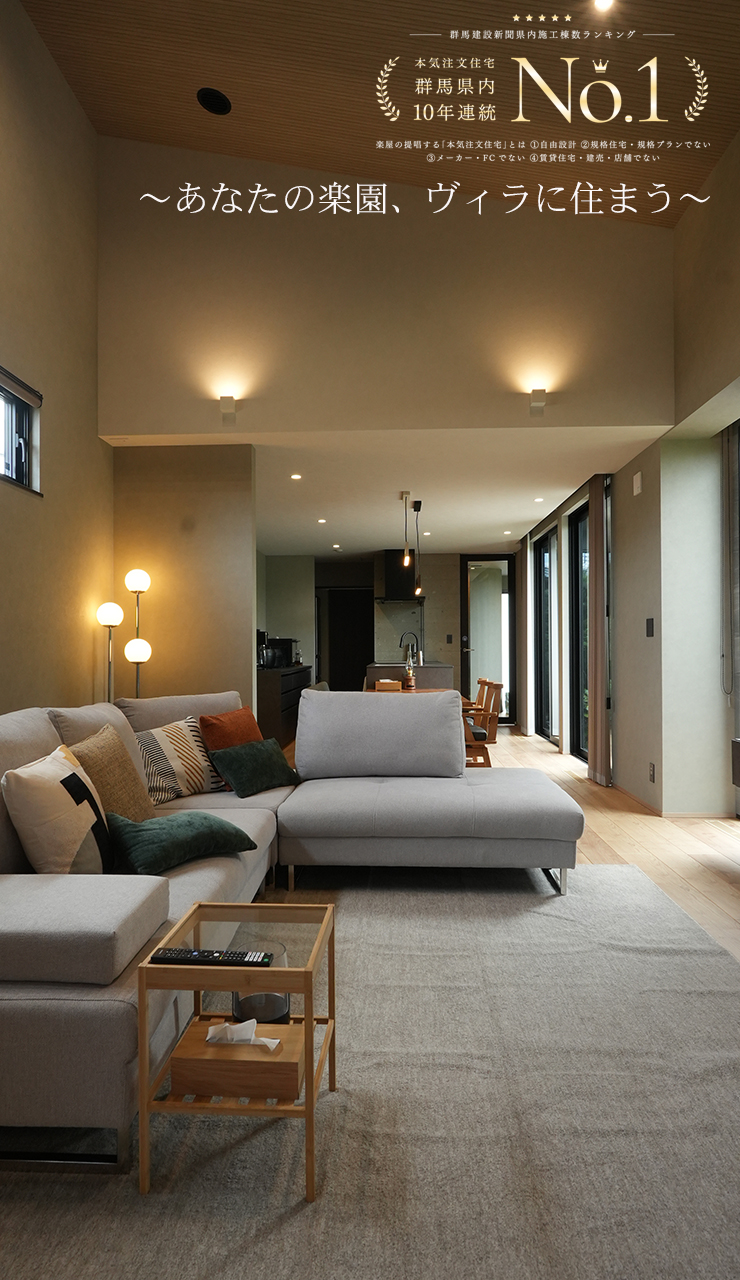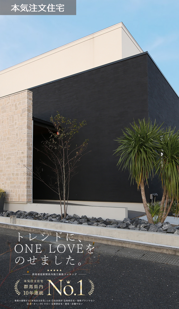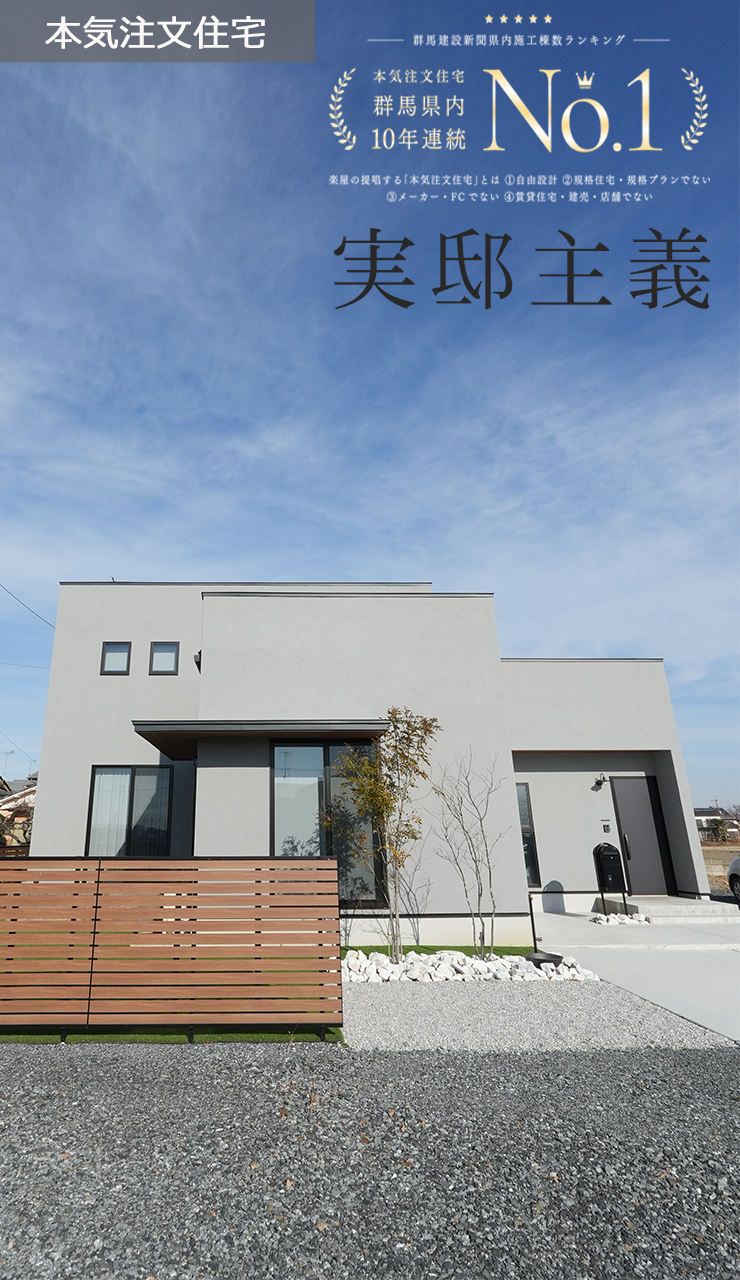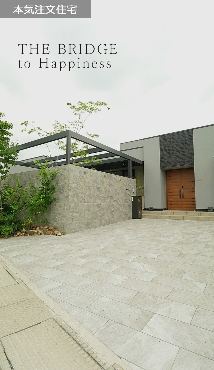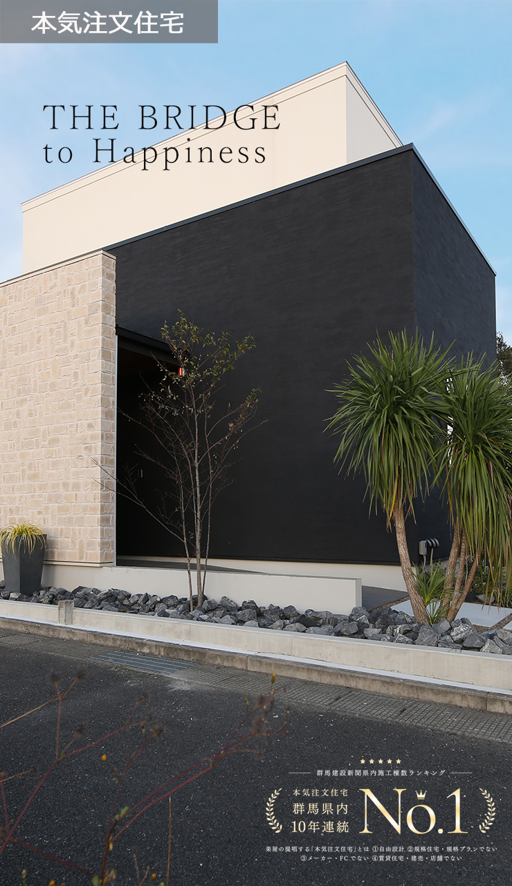 楽屋は1棟1棟すべて違うフルオーダーの家。お客様の夢を叶えた本気注文住宅です。お客様の満足・喜びが次の「しあわせの架け橋」となります。