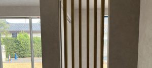 また、格子は隣空間への配慮にもつながります。空間を直接的に遮断することなく、部分的な繋がりをつくる事で、空気的流れや気配を感じることができます。突然的な空間の切り替わりが、格子を使うことで柔軟に変動することが出来ます。ここに公私を気にする人間の心理的ニーズが存在しえると考えています。