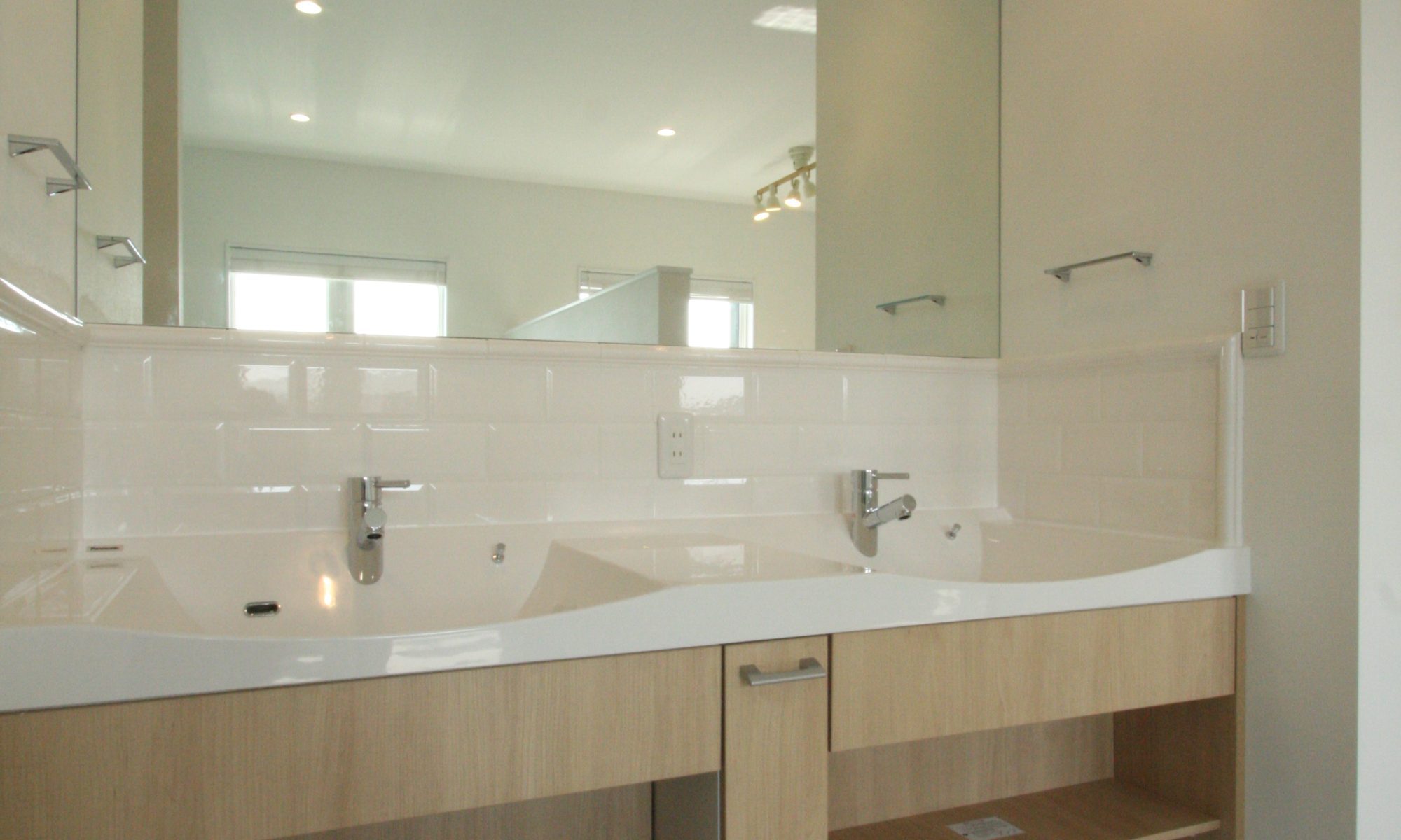 続いては、写真はそれぞれ違うお家の洗面ですが……
