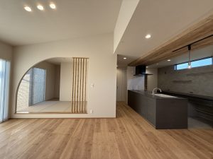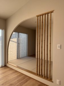リビングに隣接した小上りの和室は、竹格子を使用◎