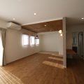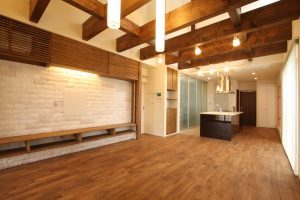 大きなLDKには見せる梁を使っており