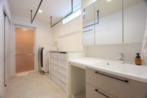 4畳の洗面脱衣物干室で家事らくな設計に◎