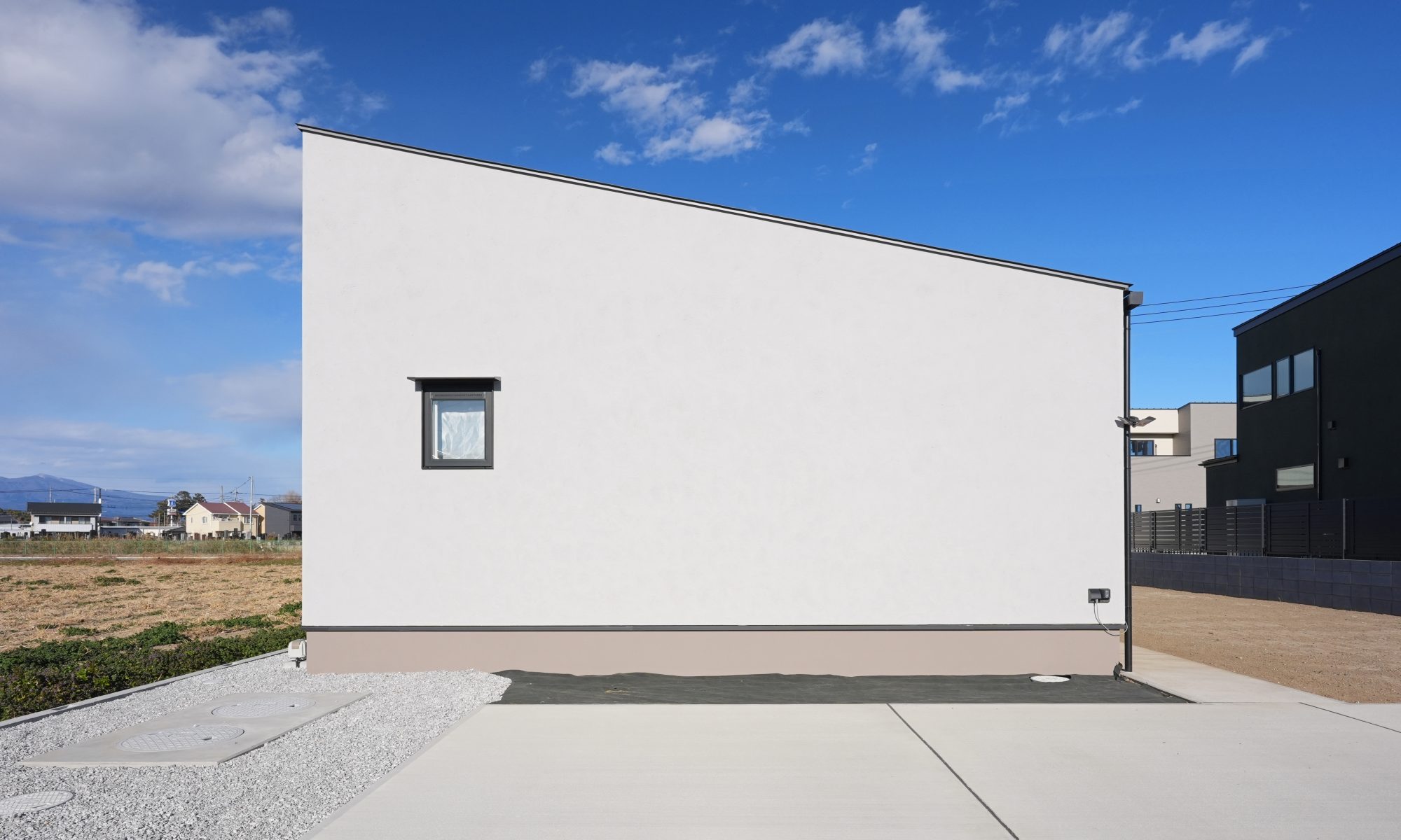 白の塗り壁にワンポイントの小窓がかわいらしい外観デザイン◎