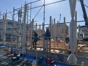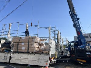 投稿日: 2026年4月9日2026年4月27日 投稿者: TAKE上棟作業中 仕事の風景 本気注文住宅上棟日大仏の日 みなさんこんにちは楽屋です 今日は、県内某社にて上棟作業を 行なっております 構造材の加工を予め行なっている プレカット工場より運ばれてきた 材料をトラックから下ろして組立 ていきます。 あっという間に柱が建ちました。 今日4月9日は奈良の大仏の日だそう 東大寺にて天平勝宝4年4月9日に 大仏様開眼供養が行われた事に因んで 設けられたそうです。 大仏様に安全をお祈りして、 今日も一日安全第一でお願いします。 TAKE 設計・作図を主に担当しています。楽屋の様々な面を皆さまへお届けできたら嬉しいです。 本気注文住宅なら群馬の工務店|楽屋(がくや) お問い合わせ (受付/10:00~18:00) 楽屋トップ アクセス 会社概要 資料請求 見楽会 こちらの記事も読まれています 上棟作業 今日は上棟日 耐力壁材~MOISS~ 上棟日和
