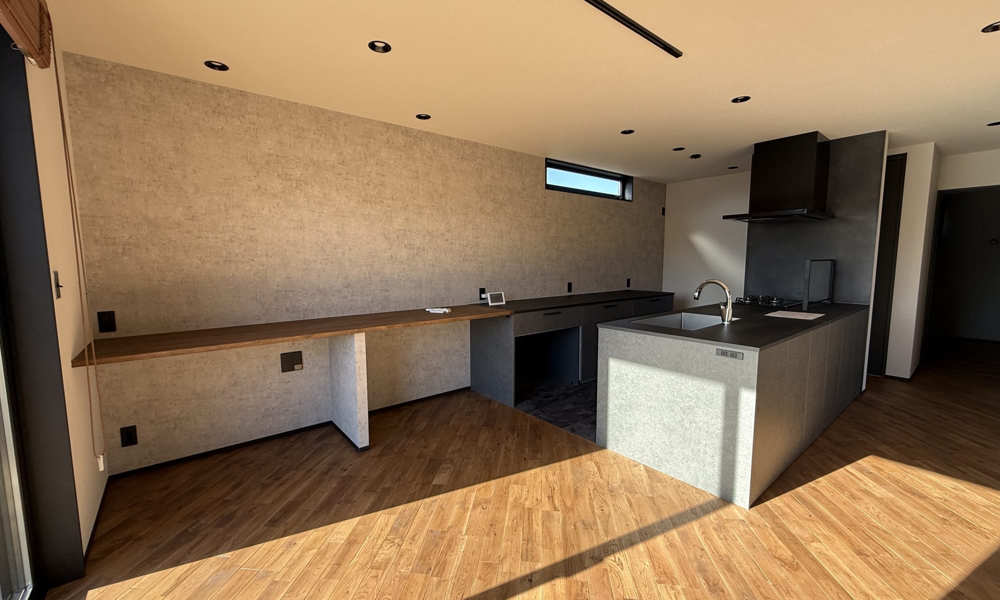 ~「素敵、快適、あなた的」なお家づくり。~ 群馬・栃木・埼玉県で本気注文住宅を お考えのお客様をサポートする「楽屋」のMAOです ✌ 先日、社内検査に行ってまいりました◎ お引渡し間近のお住まいをすこ~しご紹介 ▶▶ メイン空間は無垢床をナナメ貼りにすることで 空間…