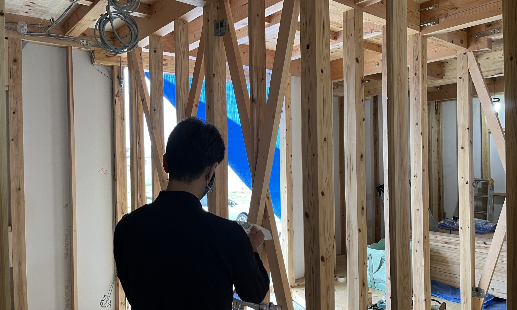 群馬、栃木、埼玉で本気注文住宅をお考えのお客様をサポートする工務店、 「楽屋」の田沼です。 木工事中の現場からお届けします♪ 上部躯体検査を行いました♪ 上部躯体検査は構造金物が図面通りに施工されているかどうか 耐力壁が図面通りに施工されているかどうか、 構造材が図…