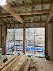 木工事中の現場からお届けします♪ サッシの取り付けが完了しました。 サッシから自然光が入り込むことで現場が明るくなり、とてもいい感じです♪ 工事監督は取りついたサッシの寸法、高さ、位置、ガラスの種類の確認を行います。 この後は、外部の工事と天井の工事に入っていきます。 引き続き安…